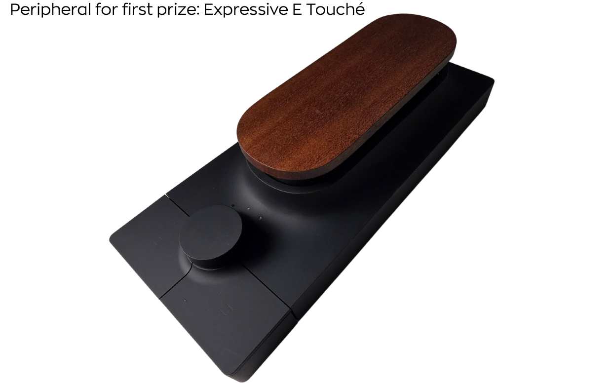 - Expressive E: Touché left hand controller, Osmose (second place prize), and Noisy 2 (third place prize)